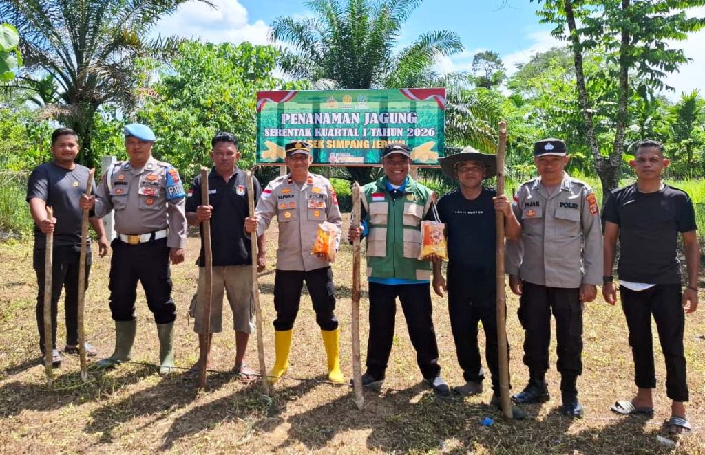 ACEH TIMUR | Dalam rangka mendukung ketahanan pangan, Polsek Simpang Jernih, Polres Aceh Timur, Polda Aceh bersama kelompok tani menggelar penanaman jagung serentak kuartal I tahun 2026 di Desa Simpang Jernih, Kecamatan Simpang Jernih, Rabu (15/04/2026).