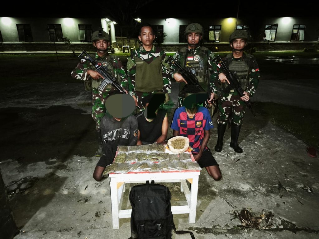 MOSSO | Satuan Tugas Pengamanan Perbatasan (Satgas Pamtas) RI–PNG Statis Yonif 643/Wanarasakti kembali menorehkan prestasi dengan menggagalkan peredaran narkotika jenis ganja di wilayah perbatasan Papua.